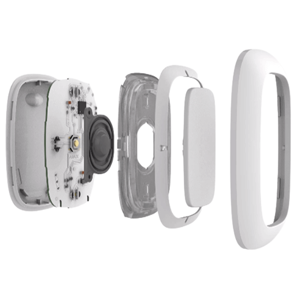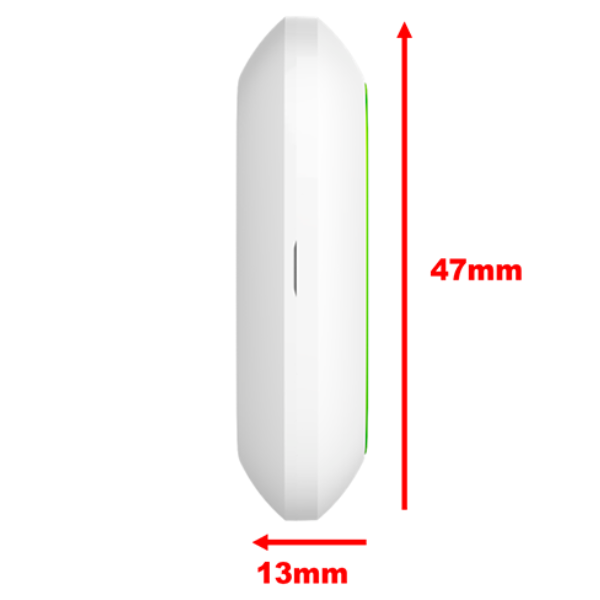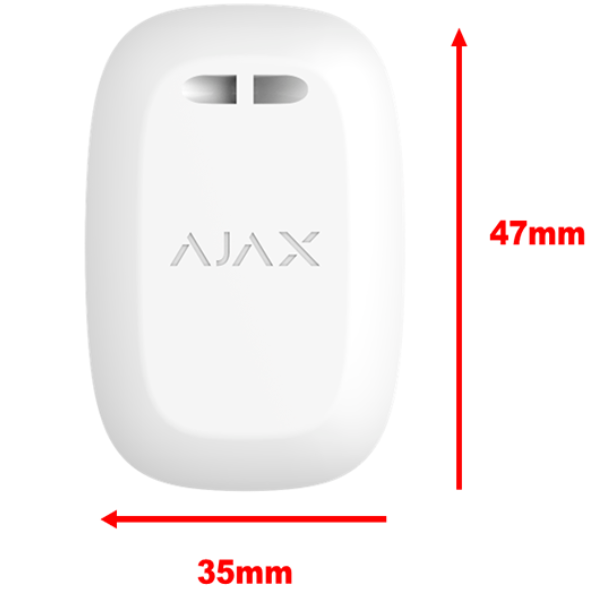 El botón está equipado con una protección contra la activación accidental y transmite alarmas a una distancia de hasta 1,300 metros desde el Hub. Tenga en cuenta que la presencia de cualquier obstáculo que impida la señal (por ejemplo, paredes o pisos) reducirá esta distancia.