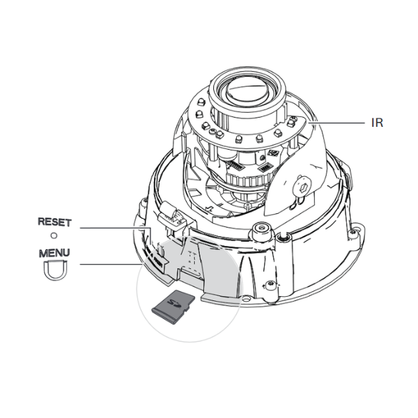 La ranura admite tarjetas de memoria microSD con capacidad de almacenamiento de hasta 2 TB. Para las grabaciones con alarmas locales se puede usar una tarjeta microSD. La grabación previa a la alarma en la RAM reduce el ancho de banda de grabación en la red o, si se utiliza la grabación en tarjeta microSD, amplía la vida efectiva del medio de almacenamiento.