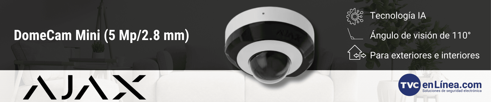 La DomeCam Mini es una cámara tipo mini domo IP de alto rendimiento y variedad de prestaciones, con resolución de 5 Mp con un lente de 2.8 mm, disponible en modelos de varias resoluciones y lentes según la necesidad : 5 Mp/4 mm, 8 Mp/2.8 mm, y 8 Mp/4 mm. Cuenta con retroiluminación inteligente e infrarroja (IR) y función de reconocimiento de objetos.