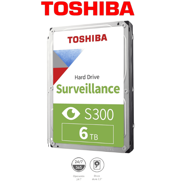 Disco Duro de 6 TB, Serie S300 especial para videovigilancia, ideal para trabajo 24/7, interfaz SATA 3.5 Marca: Toshiba Modelo: HDWT860UZSVA