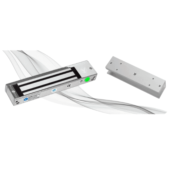 Kit o Paquete de Cerradura Magnética para Puertas de Vidrio sin Marco 180 kg (350 Lb) con Indicador Led Marca: YLI Modelo: YM180NLED y MBK180UL