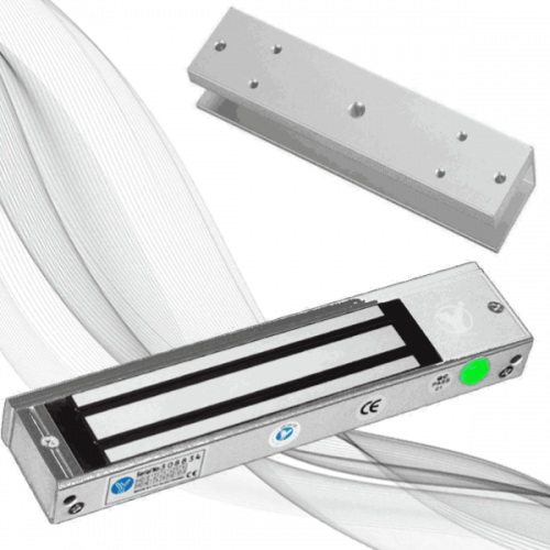 Cerradura Magnética con indicador led, fuerza de sujeción de 350 Libras y/o 180kg, Compatible con cualquier control de acceso. El indicador led se muestra en rojo cuando esta bloqueada y en verde cuando esta desbloqueda.