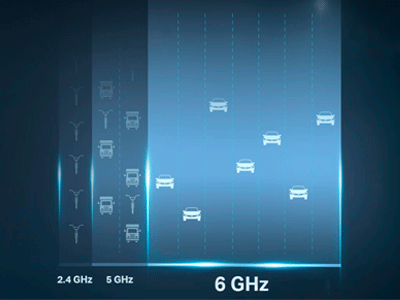Con la nueva banda de 6 GHz, experimente más ancho de banda, velocidades más rápidas y menor latencia para juegos AR/VR y transmisión 8K en sus dispositivos WiFi 6E.