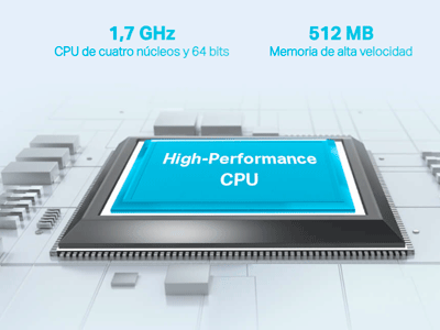 - Procesamiento de vanguardia : equipado con una CPU de cuatro núcleos de 1,7 GHz.